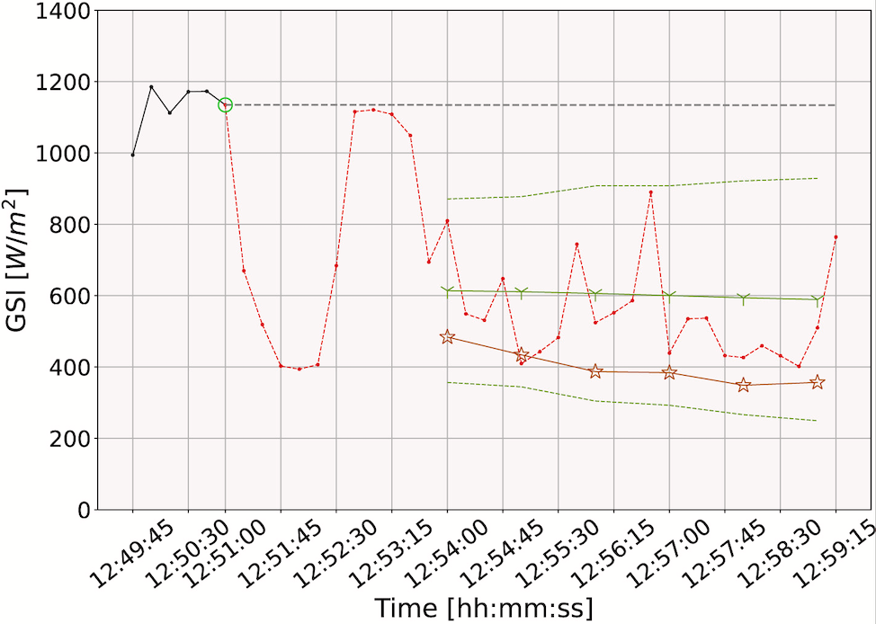Module 3 (Probabilistic deep learning):Fuses multi-sensor data—including sky images, weather station measurements, and pyranometer data to generate probabilistic forecasts of solar irradiance over 1–15 minute horizons (Terrén-Serrano & Martínez-Ramón, 2023).